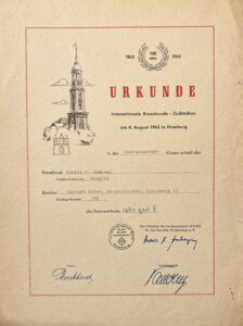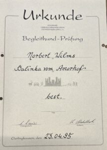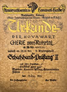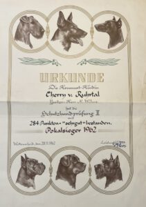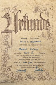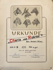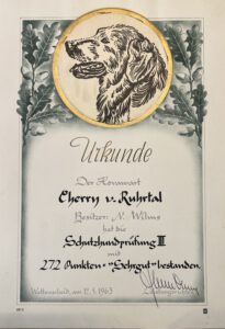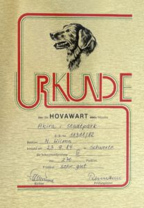 Im Dezember 1963 erhielt mein Großvater (Norbert Wilms) Zwingerschutz für die Leistungszucht „von der Luthenburg“ und wurde Züchter im RZV-H.